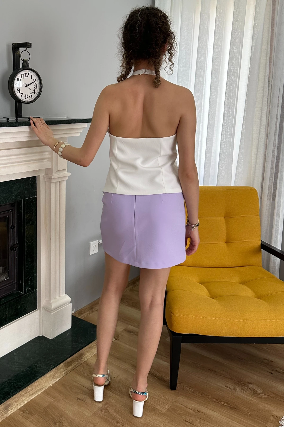 Yumuşak tonlarıyla romantik ve modern bir hava sunan lila mini etek, pastel severlerin gözdesi! Minimal tasarımı sayesinde günlük kombinlerden özel davet stillerine kadar geniş bir kullanım alanı sunar. Hafif kumaşıyla konforu, modern kesimiyle zarafeti bir araya getirir.